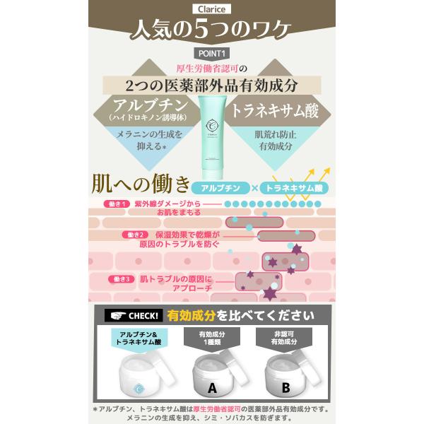医薬部外品 Clarice 黒ずみ対策 美白クリーム 黒ずみクリーム フェム フェムテック 色素沈着 ホワイトニング ハイドロキノン誘導体トラネキサム酸 無添加 脇 膝 全身 しみ そばかす