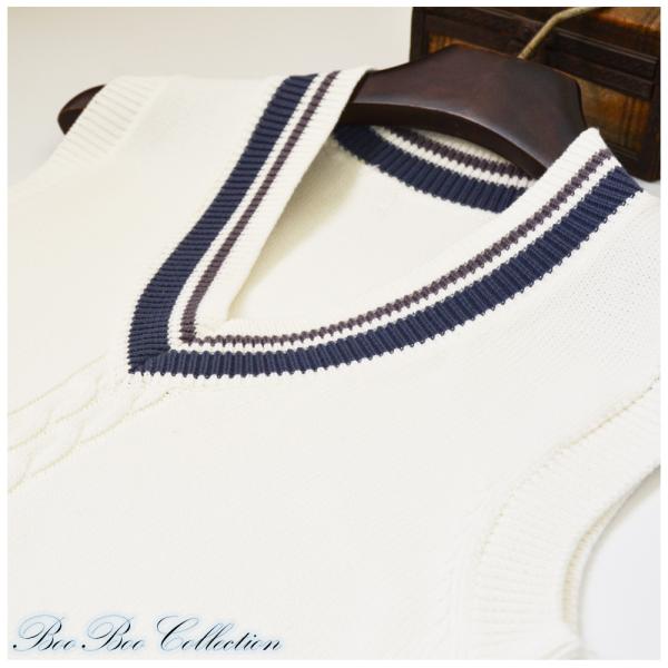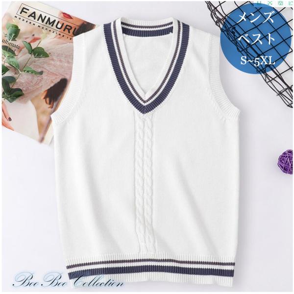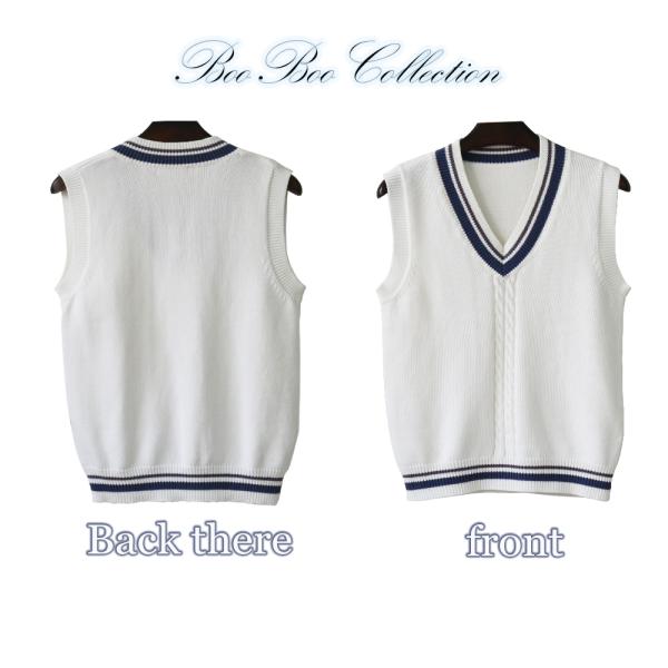 スクールベスト メンズベスト 正統派 制服 高校 通学 学生 中学 Vネック 配色 綿100% ホワイト DK0015