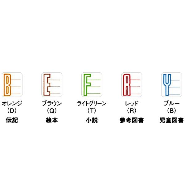 種類:B オレンジ(伝記) / E ブラウン(絵本) / F ライトグリーン(小説) / R レッド(参考図書) / Y ブルー(児童図書)