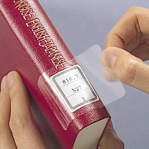 図書ラベルやバーコードラベルの上に貼る、光沢を抑えたマットな透明フィルムです。