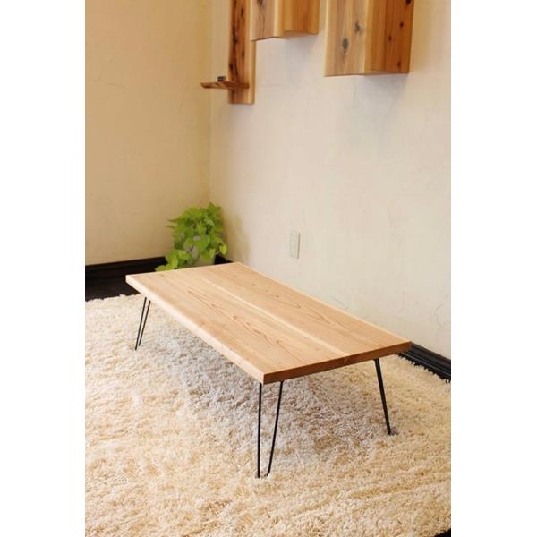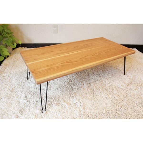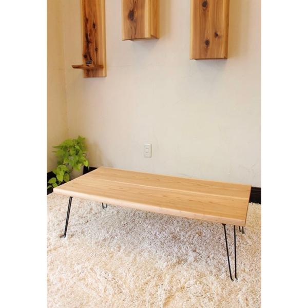 家具職人手作り 一点物 無垢材ハンドメイド ローテーブル クリプトメリア 国産杉 アイアンレッグ折りたたみタイプ 幅950mmx奥行450mm 机