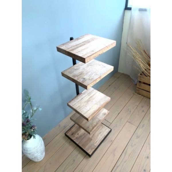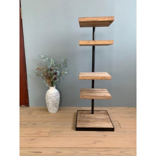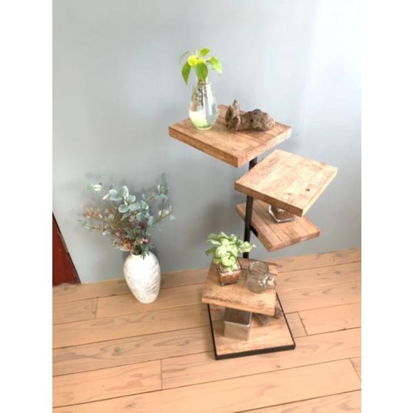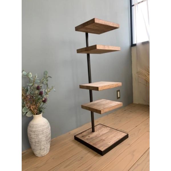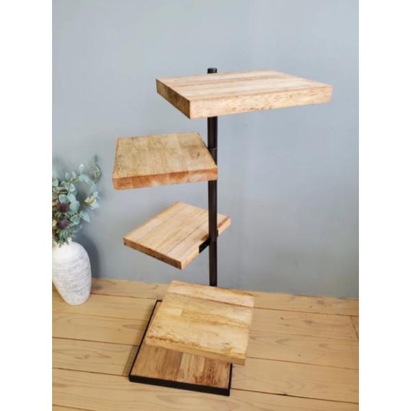 天然木 アイアンの360度回転シェルフ 観葉植物 インテリア ウォルナット風 ラック カフェ風 キャンプ アウトドア