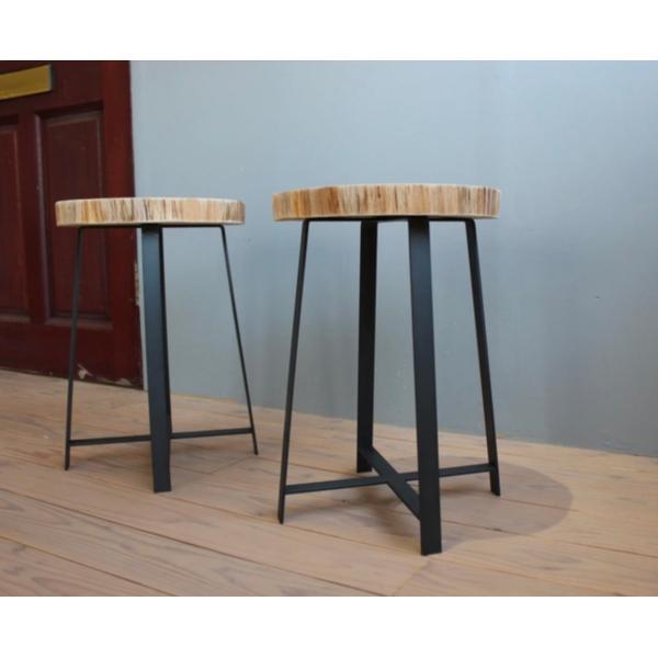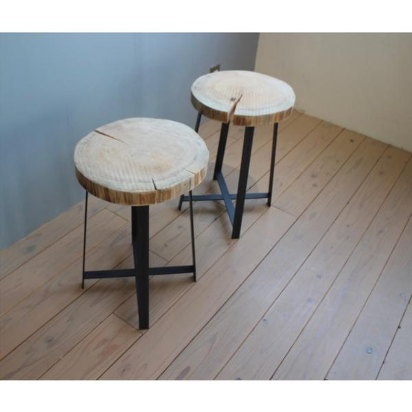 天然木 アイアンと檜無垢のスツール 職人手作り 1脚 切り株 アイアン 檜無垢 チェア 鉄脚 椅子 観葉植物 キャンプ サイドテーブル併用 テーブル