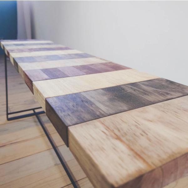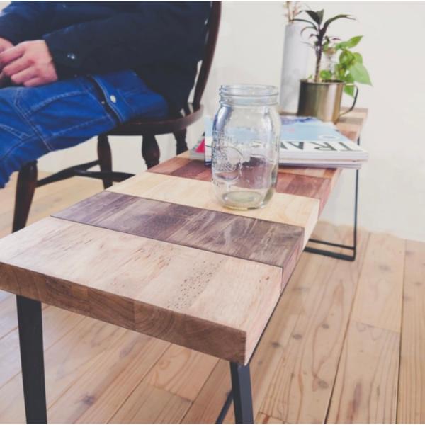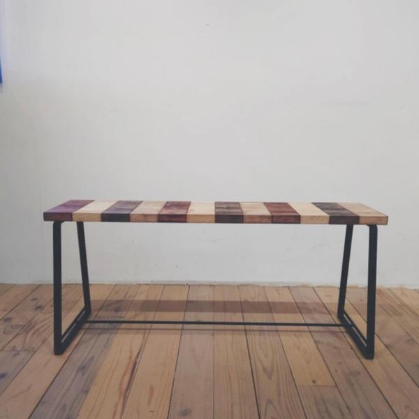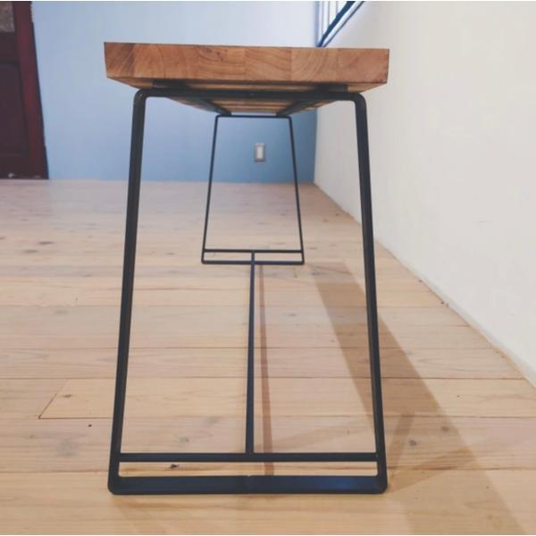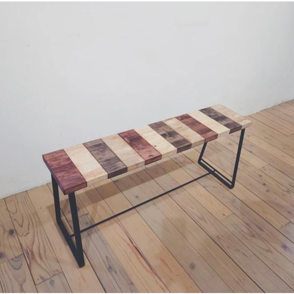 天然木 アイアン脚のベンチ キャンプ サイドテーブル 2人掛け 観葉植物 ラバーウッド 店舗に最適