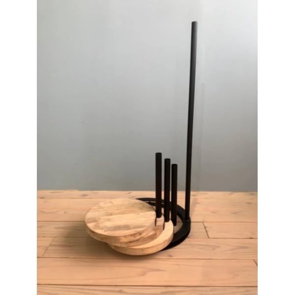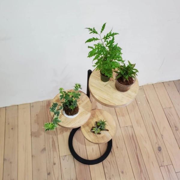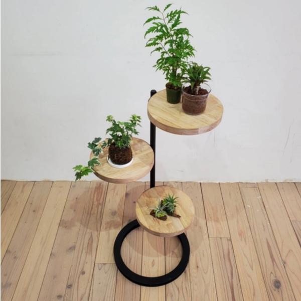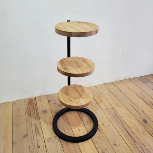 天然木 アイアン 360度回転シェルフ 円形 ラック 棚 観葉植物 キャンプ インテリア アウトドア