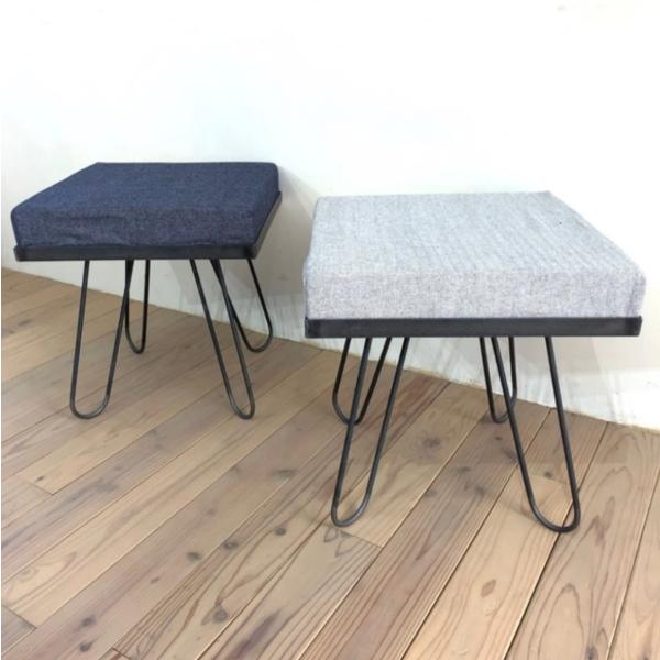 アイアン スクエアスツール 1脚 2色(ブルー・グレー) 角形 椅子 チェア 高反発ウレタン スツール
