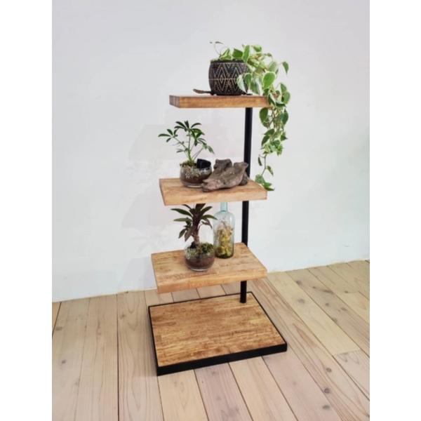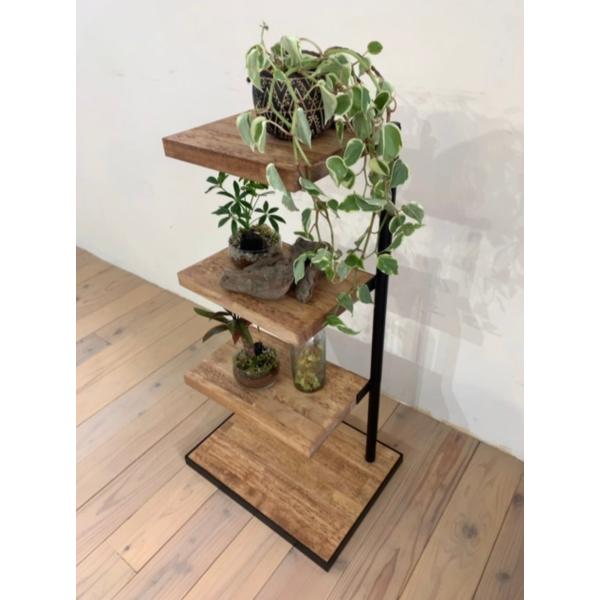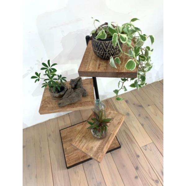 天然木 360度回転シェルフ ラック 棚 アイアン 観葉植物 キャンプ アウトドア ラック