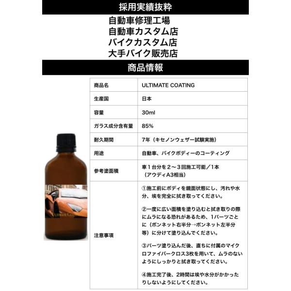 とにかく水を弾く 7年持続 ダイヤモンドコーティング ULTIMATE COATING 自動車ボディ 超撥水 耐キズ ガラスコーティングを遥かに超える強度
