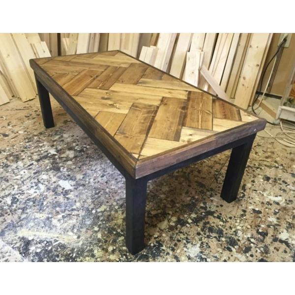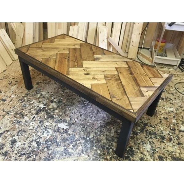 職人手作り 一点物 天然木 ハンドメイド ヘリンボーン ローテーブル リビングテーブル ウォルナット 幅1200mm×奥行き620mm×高さ370mm 机