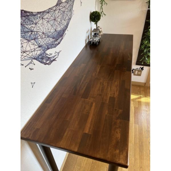 カウンターテーブル 杉 アイアン丸脚 (幅1200mm×奥行400mm×高さ684〜714mm) ★サイズ変更可 ホルムアルデヒド放出安全基準を最高基準でお子様にも安心