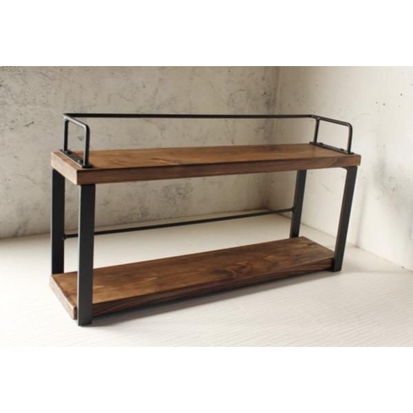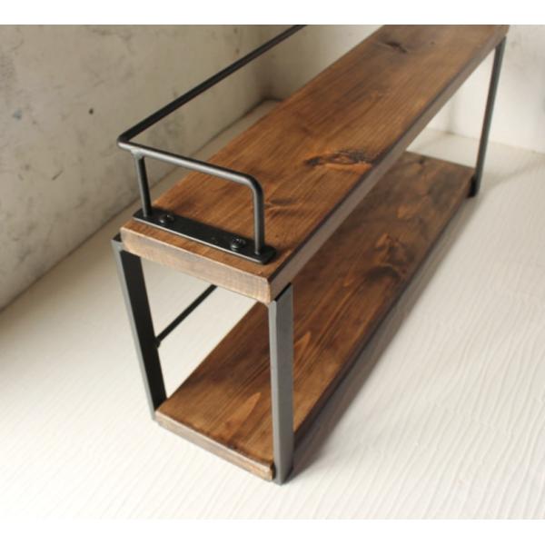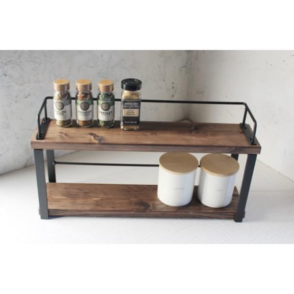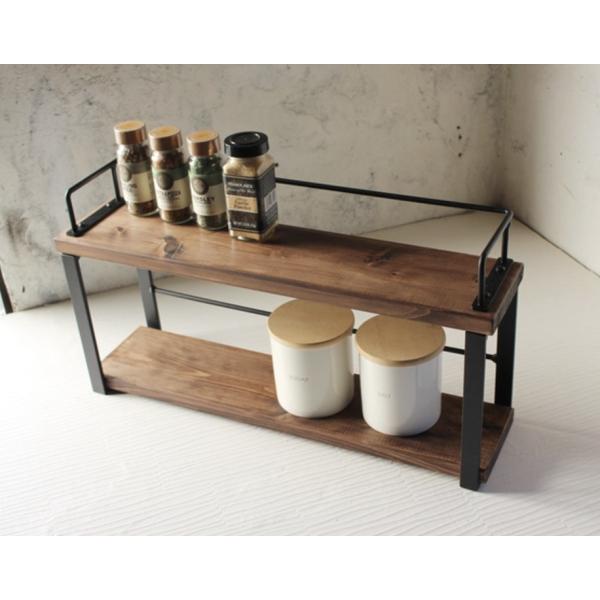 天然木 ウォールナット色 アイアン 2段 スパイスラック 調味料棚 無垢材 職人手作り 一点物 ハンドメイド ウォルナット