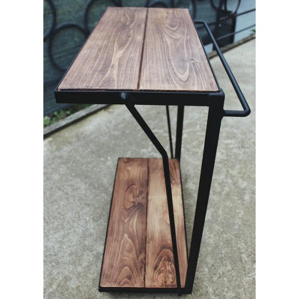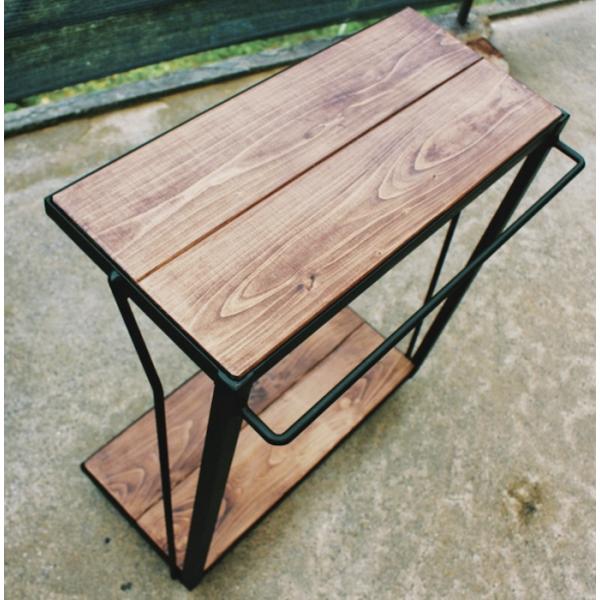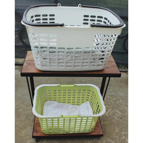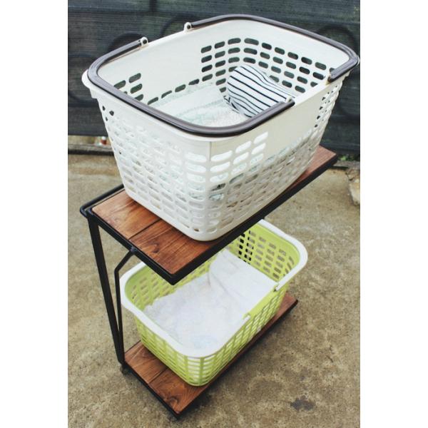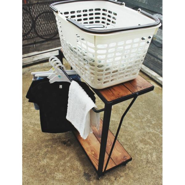 天然木 ウォールナット色 アイアン 2段 ランドリーラック キャスター付き 洗濯台 無垢材 職人手作り 一点物 ハンドメイド ウォルナット