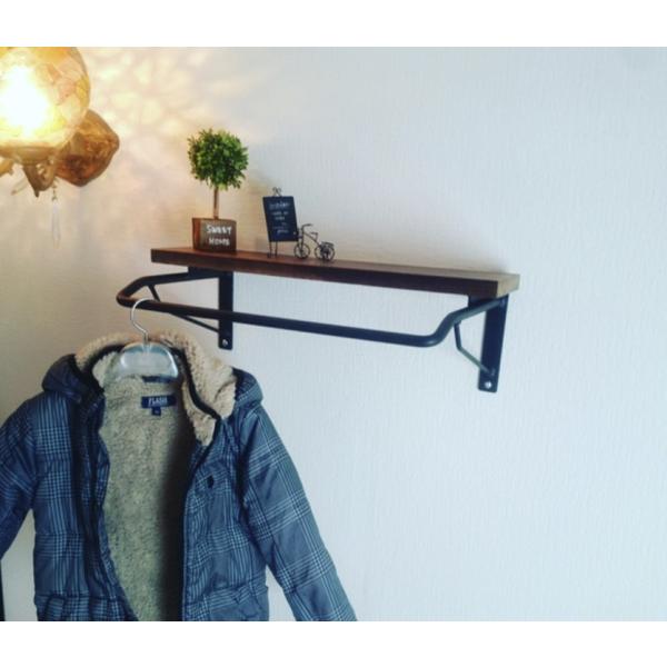 大人用のハンガーを掛けれるように、壁側から約24cmの位置にハンガーを掛ける丸鉄をつけています。