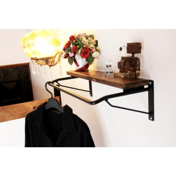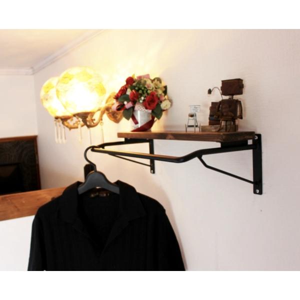 天然木 ウォールナット色 アイアン 幅49cm-90cm 壁掛けハンガーラック 小物置き 無垢材 職人手作り 一点物 ハンドメイド ウォルナット
