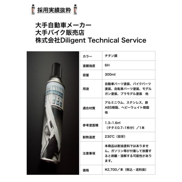 エアロ塗装に最適!とにかく剥がれないチタン調塗料!《ガラスコーティング並みの塗膜強度》 徳用4本セット【送料1本分!】