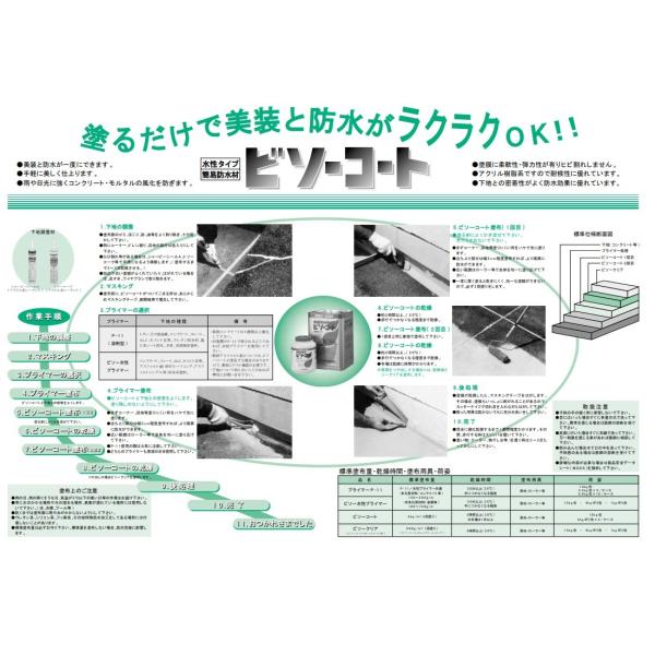 ビソー水性プライマーは 塗膜防水ビソーコート専用プライマー です。