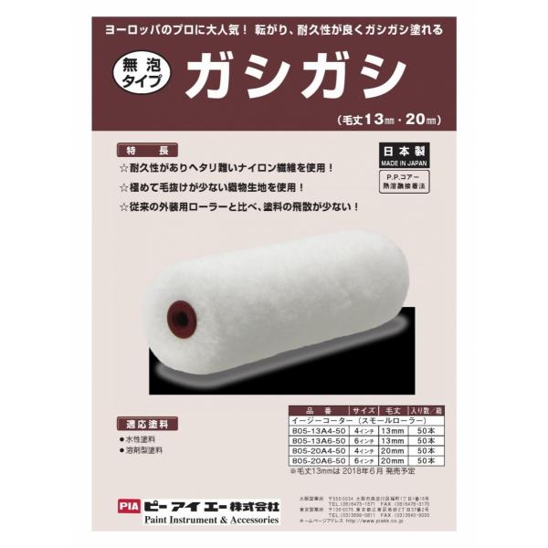 pia ガシガシ 50本箱 4インチ 毛丈 13mm 20mm ヘタリ難い 耐久性があり 無泡タイプ 外装用ローラー ピーアイエー