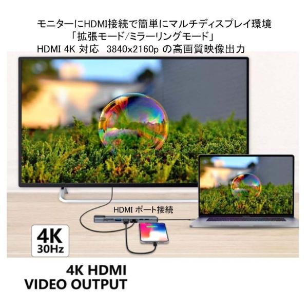 (ミラーモード/拡張モード)を実現できます。対応解像度:最大3840×2160(4K/30Hz)