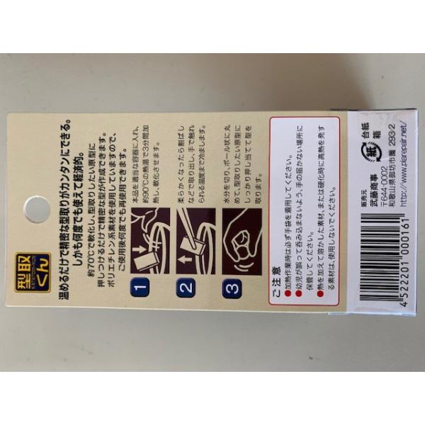 型取りくん(K-55) ご注意 ○加熱作業時は必ず手袋を着用して下さい。○幼児が誤って呑み込まないよう、手の届かない場所に保管して下さい。 ○熱を加えて溶かした素材、または硬化時に高熱を発する素材は使用しないで下さい。