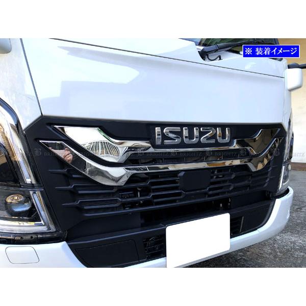 いすゞ 23エルフ 超鏡面 ステンレス メッキ フロント グリル カバー ガーニッシュ モール ベゼル フィン パネル サイド 2PC TRUCK−L−141