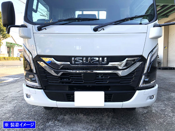 いすゞ 23エルフ 超鏡面 ステンレス メッキ フロント グリル カバー ガーニッシュ モール ベゼル フィン パネル サイド 2PC TRUCK−L−141