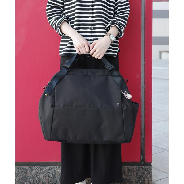 幾何学的デザインを生かした収納力 35L容量のボストンバッグ