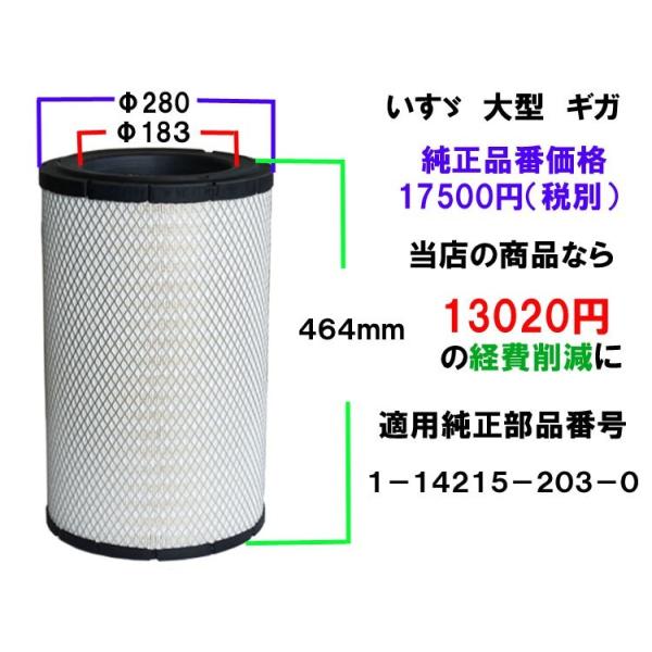 エアフィルター エアエレメント トラック 大型 いすず ギガ 純正番号1-14215-203-0 エアーフィルター エアーエレメント