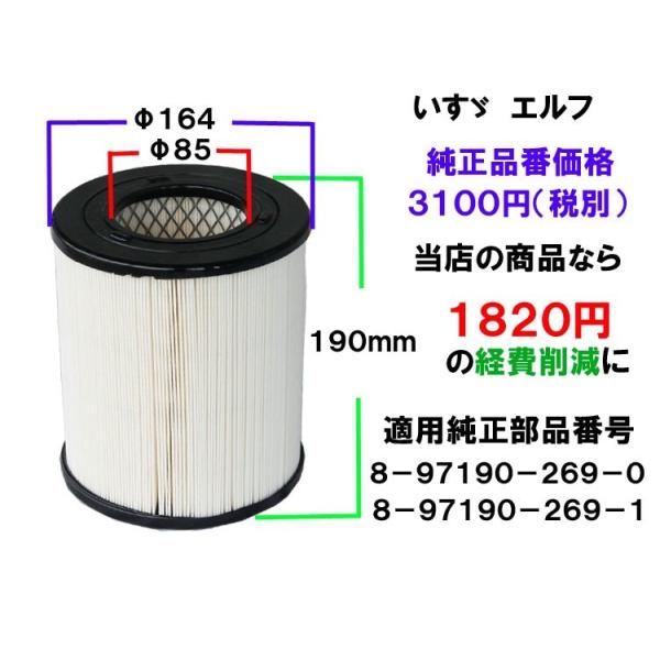 エアフィルター エアエレメント トラック用 2t いすず エルフ 純正番号8-97190-269-0他 エアーフィルター エアーエレメント