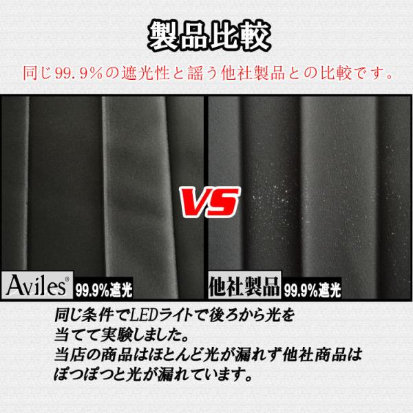 他社遮光素材使用カーテンとの比較画像あり。