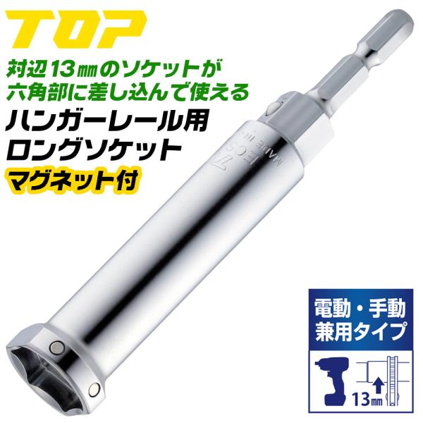 トップ工業 電動・手動兼用 マグネット付 ハンガーレールソケット 17mm 薄口 設備 配管 D-1 D-2 D-3 レースウェイ 肉薄 13mmソケット対応 日本製 ECS-17LTM TOP
