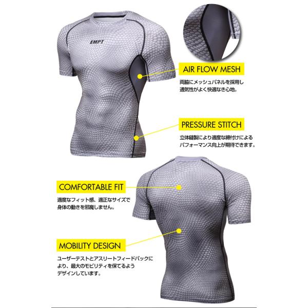 EMPT メンズ コンプレッションウェア パイソン カモフラ コンプレッションウェア コンプレッションウェア 夏用 夏 半袖 Tシャツ おしゃれ 大きいサイズ 小さいサ