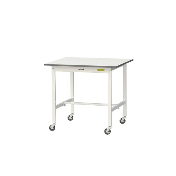 【直送品】 山金工業 ワークテーブル150シリーズ 高さ調整タイプ移動式 半面棚板付 RoHS2指令対応 塩ビシート天板 SURAC-960T-GYW 【大型】