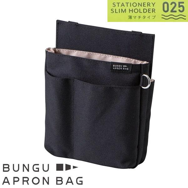 【1個のみメール便OK】 クツワ 文具エプロンバッグ 薄マチ [ ブラック ] ベルトループ・カラビナ付き 別売ベルトで ショルダーバッグに BUNGU APRON BAG BE025BK