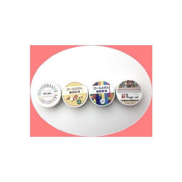 メール便(ポスト投函)ロール付箋紙 サクラクレパス柄・クーピー柄・マジックインキ柄・サラサマッキー柄 4点セット