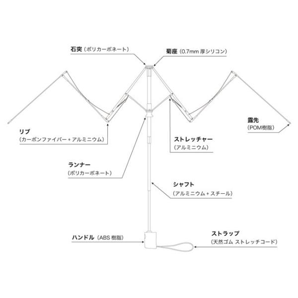 ・この傘は特殊な構造により、ハンドルのボタン操作でしか開閉することができません。