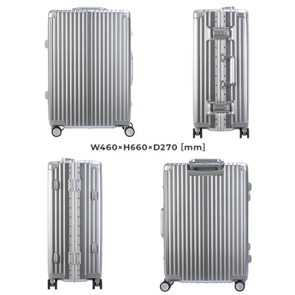 スーツケース Mサイズ 60L 中型 軽量 丈夫 アルミフレーム シルバー DBCラゲージ HIRODBC ADL-G24