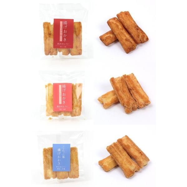 揚げおかき(塩味・しょうゆ味・こんぶ茶味)