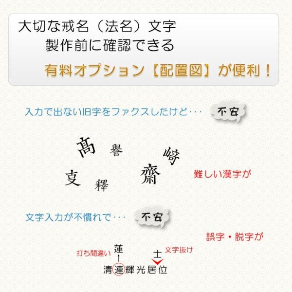 仏具【製作前に確認できる有料オプション:配置図】本体(位牌・法名軸・過去帳・霊璽)と文字入れ代は別売です