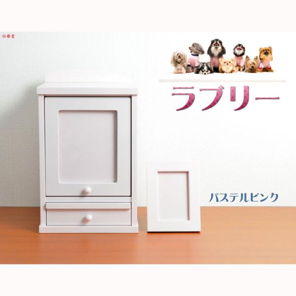 ペット仏壇【ネーム入りフォトフレーム付き:新・ラブリー サイズ小 パステルピンク】名入れ無料 送料無料