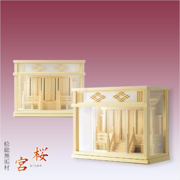 モダン神棚【三社箱宮 桜宮(さくらみや)桧総無垢材+神具セットB】すぐに使える神具付 送料無料