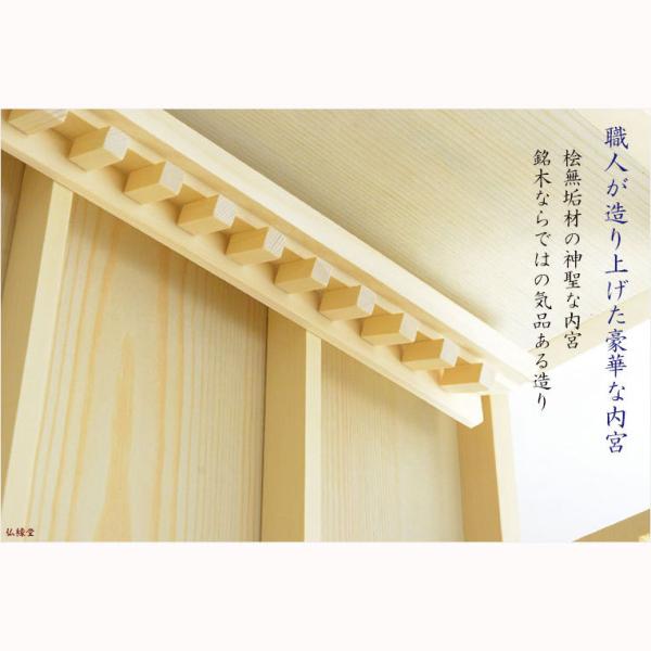 神札をお祀りする神聖な内宮は、神棚を引き立たせる精巧な造り