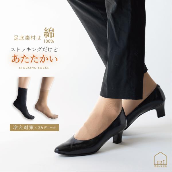 ストッキングソックス ショート フットカバー レディース 35デニール あったかい 靴下 くつ下 くつした ショート丈 くるぶし パンプス ブラック ベージュ 2set