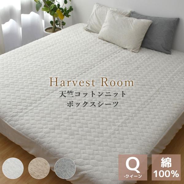 天竺ニット パッド一体型ボックスシーツ クイーン 160×200×25cm 綿100% 杢カラー 通年 HarvestRoom