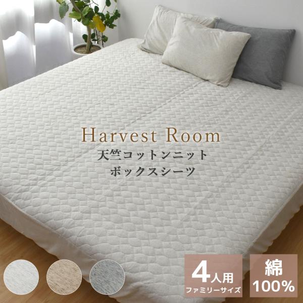 天竺ニット パッド一体型ボックスシーツ 4人用 240×200×25cm 綿100% 杢カラー 通年 HarvestRoom