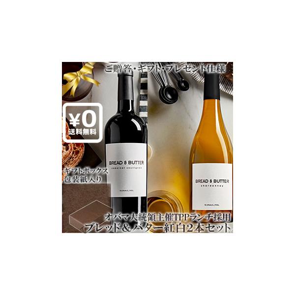 送料込みギフト箱入り紅白2本セット(包装紙込み) ブレッド&バター シャルドネ カベルネソーヴィニヨン