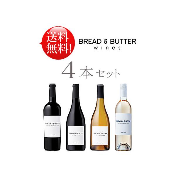 送料無料ブレッド&バターお試しワイン4本セットb シャルドネ ピノノワール カベルネ・ソーヴィニヨン ソーヴィニヨンブラン クール便は別途+¥260 赤白