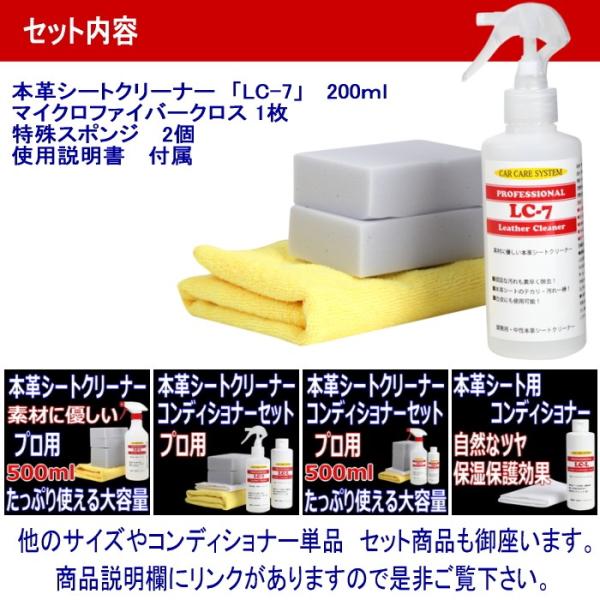 本革 レザー シート クリーニング 本皮 クリーナー LC-7 200ml 中性タイプ プロ用 マイクロファイバークロス 専用スポンジ