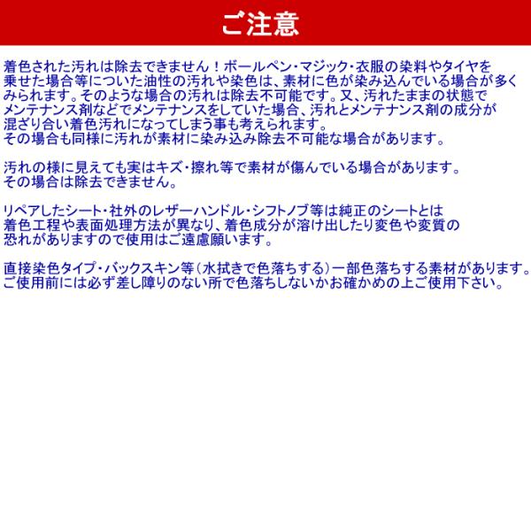皮革製品に悪影響を与える成分は一切含まない中性タイプですので純正品でしたら殆どの本革シートにご利用頂けます。