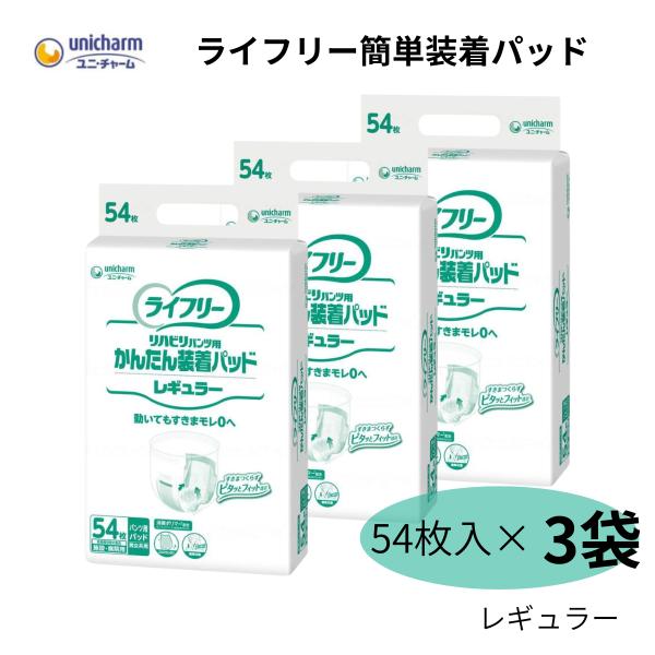 尿とりパッド おむつ ライフリー 男性 女性 レギュラー ケース販売 54枚入×3袋 紙パンツ ユニチャーム 大人用 爆買