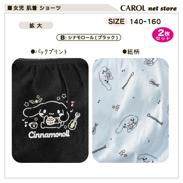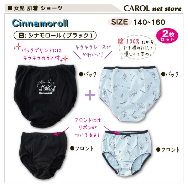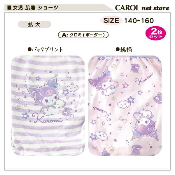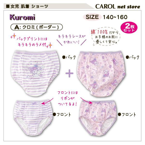 女児 ジュニア パンツ 子供 クロミ シナモロール ショーツ 肌着 インナー 女の子 140 150 160 2枚組 キッズ メール便